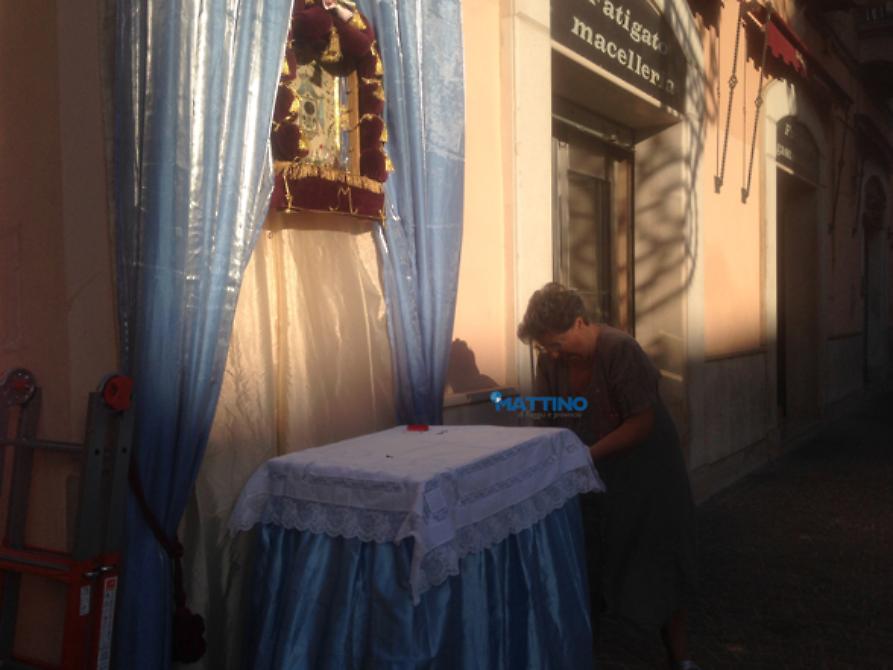 Da oltre mezzo secolo, l'altarino in Piazza del Lago dedicato dalla famiglia Fatigato alla Madonna dei Sette Veli è ormai una tradizione. Ogni 14 di agosto viene allestito per la fermata che il sacro tavolo della Patrona di Foggia fa, al termine della processione serale, per commemorare il ritrovamento del quadro che il 13 agosto del 1062 avvenne proprio in Piazza del Lago, vicino la Cattedrale di Foggia.