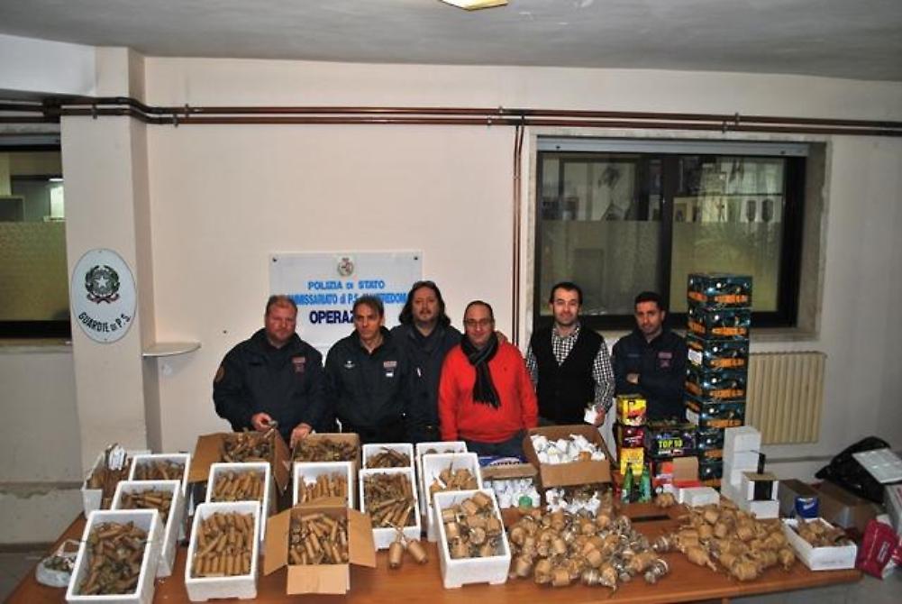 Una vera e propria “Santabarbara” scoperta in una masseria in località Fontanarosa, agro del Comune di Manfredonia. E' l'esito dell'operazione degli agenti del commissariato sipontino che hanno denunciato tre persone del posto per detenzione di armi ed esplosivo. Già da qualche tempo i poliziotti sono impegnati in una serie di servizi di controllo del territorio, soprattutto dopo i numerosi attentati dinamitardi avvenuti in zona. Nel corso di una perquisizione nella masseria molto lontana dal centro abitato, nella camera da letto, gli agenti hanno trovato una carabina automatica calibro 22 marca Beretta completa di caricatore innestato rifornito con cinque cartucce, pronta all’uso, ed un calcio di fucile calibro 12; venivano altresì rinvenute ulteriori duecento munizioni, una cinquantina aventi calibro 22, la rimanenza avente calibro 12. Nel frattempo sono giunti sul posto altre due persone fra le quali una già conosciuta agli investigatori in quanto annoverante numerosi pregiudizi di Polizia in materia di esplosivi e munizionamento, fra i quali un divieto di detenere armi ed esplosivi emesso dalla Prefettura di Foggia nel 2005. Nell’abitazione in uso al pregiudicato si rinvenivano pericolosissimi ordigni pirotecnici artigianali. La perquisizione è stata estesa a casa di uno degli indagati e lì vi era una vera e propria “Santabarbara”: nella camera da letto e nello sgabuzzino vi era numeroso materiale della medesima specie per un peso complessivo di circa duecento chilogrammi, in maggioranza composto da micidiali fuochi pirotecnici artigianali illecitamente detenuti. Le tre persone sono state indagate in stato di libertà, mentre successivi accertamenti permettevano di accertare che la carabina calibro 22 risultava essere stata denunciata presso il commissariato circa cinquant’anni fa da una persona nel frattempo deceduta. Entrambi i fucili e relativo munizionamento venivano sottoposti a sequestro ed, al fine della messa in sicurezza del materiale esplodente sequestrato, si faceva intervenire personale del Nucleo Artificieri di Bari