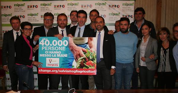 A Roma, presso il Ministero, con loro l'assessore regionale al Bilancio, il foggiano Raffaele Piemontese, e il presidente di Confcooperative Giorgio Mercuri. Presentata la raccolta di firme (finora più di 41mila) a sostegno della petizione promossa da "VàZapp" per difendere gli agricoltori che coltivano il pomodoro italiano, combere lo sfruttamento della mano d’opera e non far fuggire i giovani agricoltori verso altri lavori apparentemente più dignitosi.