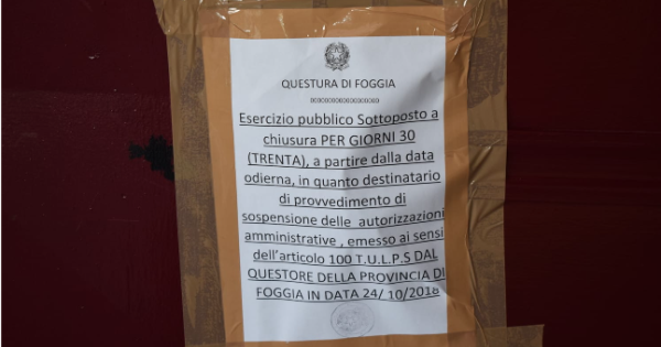 Provvedimento emesso dal questore di Foggia