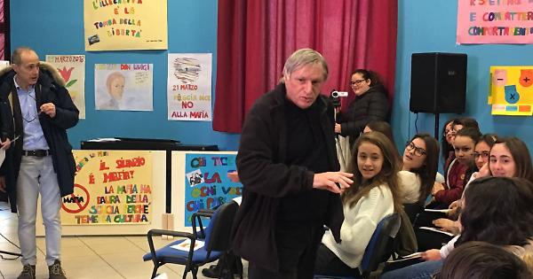 È stata una mattina speciale, quella vissuta dall'stituto "Parisi De Sanctis": don Luigi Ciotti, fondatore di "Libera" ha incontrato gli studenti della scuola media in preparazione alla Giornata della memoria per le vittime delle mafie che si terrà a Foggia il 21 marzo. Don Ciotti è stato accolto dal Dirigente Alfonso Rago e dalle docenti Francesca Messina e Liliana Marotta, referenti del Progetto "Libera...il bene", in collaborazione con l'Associazione Libera di Foggia. Sono intervenuti referente dell'USP (Ufficio Scolastico Provinciale), Tarantino, e l'assessore all'istruzione del Comune di Foggia Claudia Lioia. I ragazzi, che avevano preparato con cura l'incontro realizzando slogan e cartelloni, hanno ascoltato con molto interesse e posto numerose domande alle quali don Ciotti ha risposto con affettuosa puntualità. Al termine il dirigente Rago, a nome di tutta la comunità scolastica, ha donato all'illustre ospite una targa ricordo della mattinata.