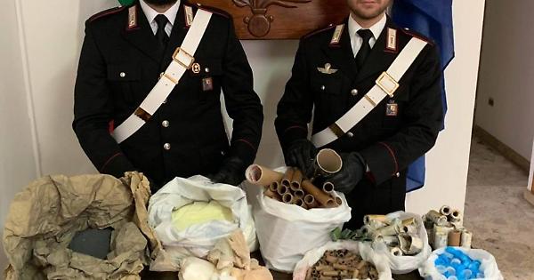 I militari dell’Arma hanno infatti rinvenuto 600 grammi di polvere nera, 1600 grammi di potassio nitrato, 400 grammi di polvere d’alluminio, 160 grammi di polvere rosa, 10 chili di zolfo, 624 candelotti