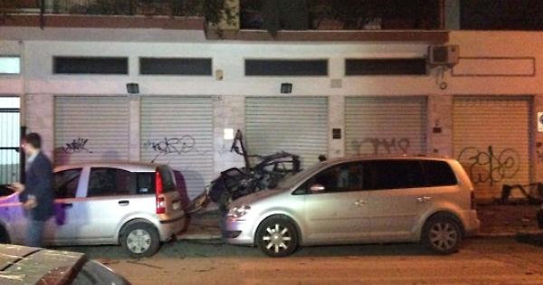 Nella foto si intravedeva la Lancia Y nera fatta esplodere vicino al garage