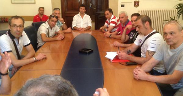 Gli operai della Tozzi all'incontro con Mongelli, ieri mattina in Comune