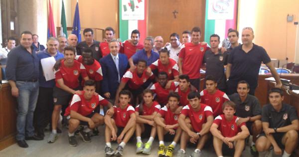 La rappresentativa dell'Atletico Madrid accolta da Mongelli a Palazzo di città