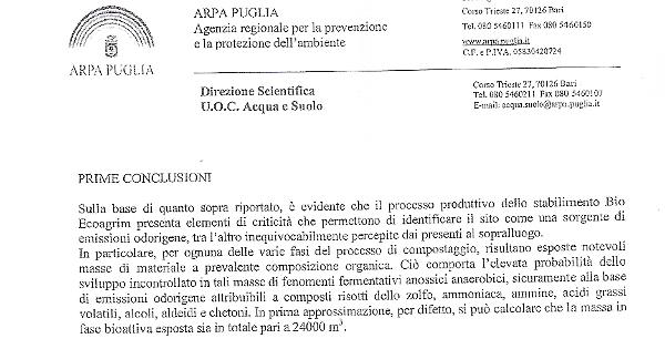 Le conclusioni della relazione finale dell'Arpa