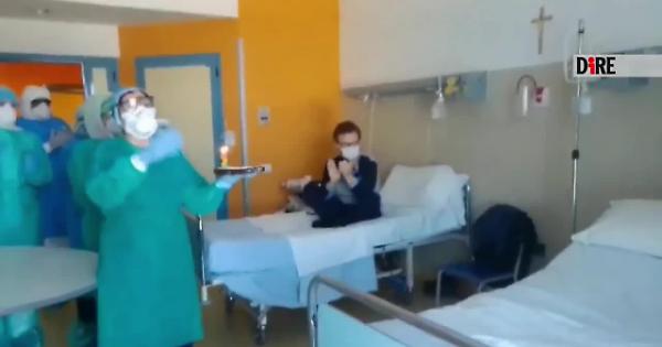 Festa di compleanno in ospedale per Tiziano, un 37enne di Ariano Irpino, una delle zone rosse della Campania, affetto da Covid-19 e ricoverato nell'unita' operativa di medicina interna dell'azienda ospedaliera San Giuseppe Moscati di Avellino. Tiziano ha spento le candeline dal reparto in cui e' ricoverato. Ad applaudire e augurargli buon compleanno i medici e gli infermieri del Moscati.